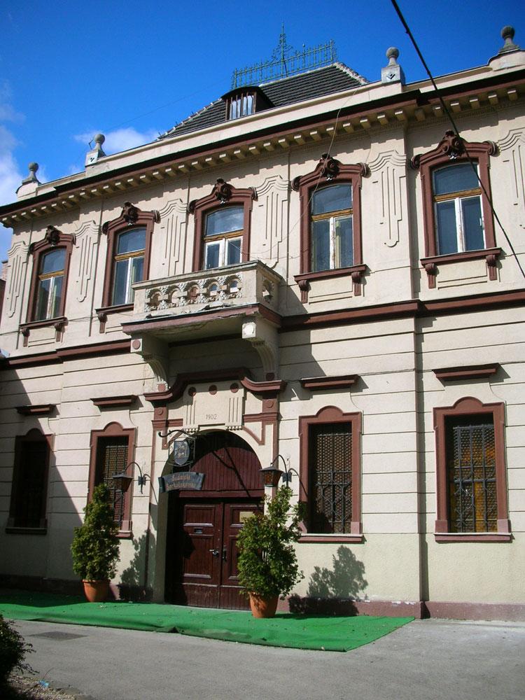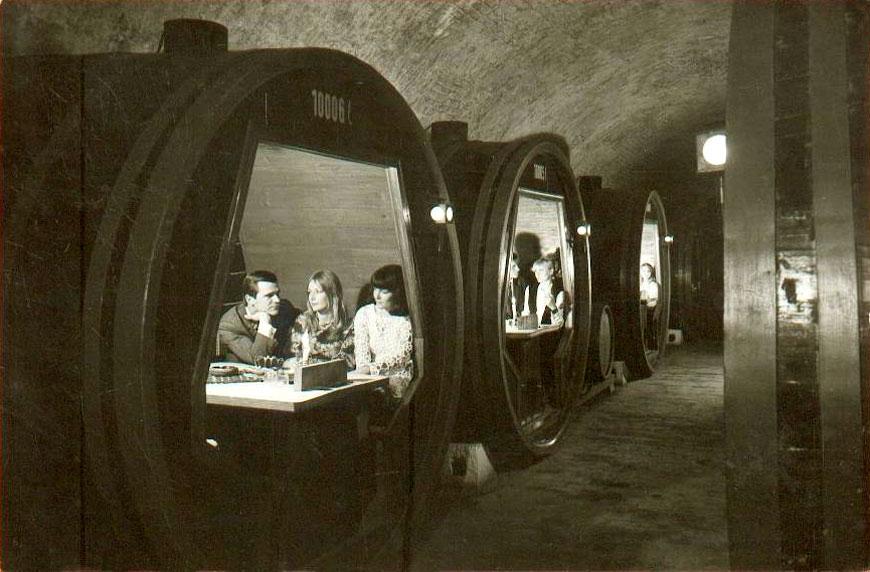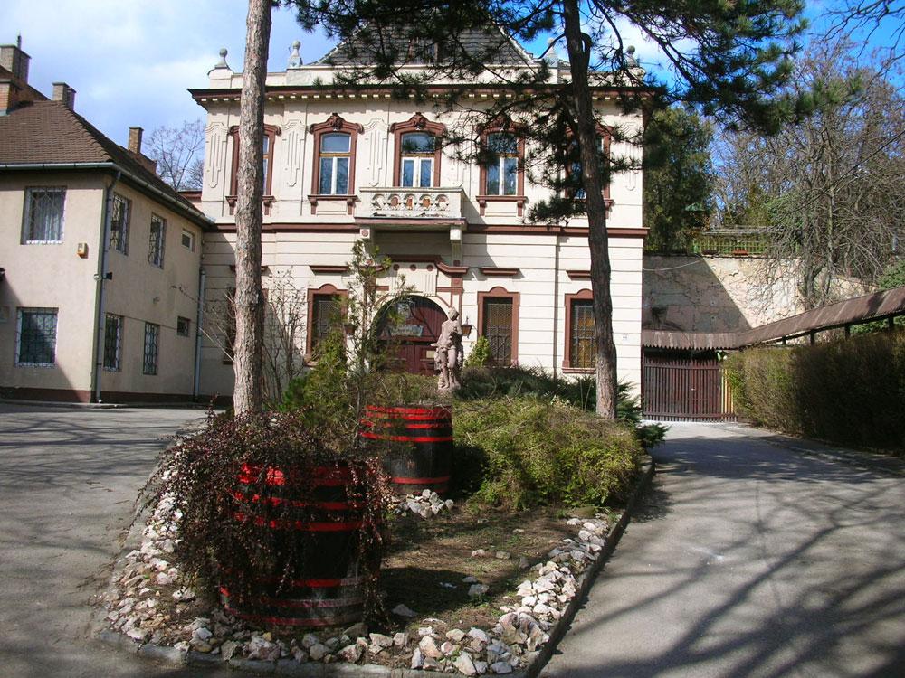 A Brückner borkereskedő család 1880-as években vásárolt 1902-ben felbővitett, majd az 1940-es évek végén széttagolt pincészetében 1968-óta , lényegében Grimm György belsőépítész tervei alapján kialakított idegenforgalmi vendéglátó egység működik. A pince bejáratát az 1900-1902 közőtt épített, kétszíntes középerkélyes, manzárdtetős fogadóépület rejti.