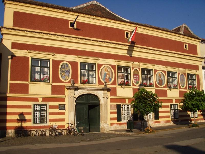A Városháza Magyarországon talán az egyetlen olyan középület, amely létrejöttétől a mai napig megőrizte eredeti rendeltetését. A Stadthaus vagy szenátusház az 1328-1876 között széles önkormányzati jogokkal rendelkező város helyi kormányzati épülete volt, amely a közigazgatás 1876-os reformjától 1949-ig a polgármesteri hivataloknak is helyet adott. Mint a város mindenkori közéletének központja, szerencsésen kapcsolódott az egykori főtér, a belső piactér (ma Jurisics tér) életéhez. Meglepően közel állt a város legforgalmasabb áteresztő kapujához, az Alsó kapuhoz. Ebben az épületben zajlott az önkormányzati élet sokfélesége: az igazgatás és gazdálkodás, a büntető és polgári perek, az ítélet- és szabályalkotás, de az országgyűlési követek és deputációk kiküldésének ceremóniája, sőt a törvényhírdetés is. Az épület mai homlokzata az 1710. évi nagy tűzvész után alakult ki. A sávos képzésű földszintet az emelettől erőteljes övpákány választja el. Ezt az egyszerű keretezésű emeleti könyöklővel és szemöldökpárkánnyal kiképzett ablakok kötik ossze a tagozott, széles főpárkánnyal. Felette az egész homlokzatot erőteljes párkánnyal záruló, nyílásokkal áttört attikafal koronázza. Mögötte húzódik a védelmi célokat is szolgáló ároktető. F: wiki.utikonyvem.hu